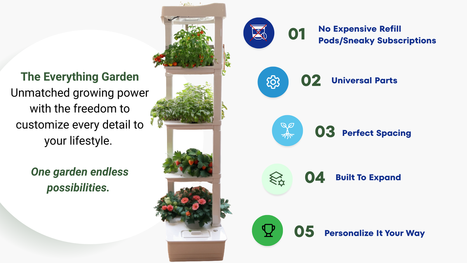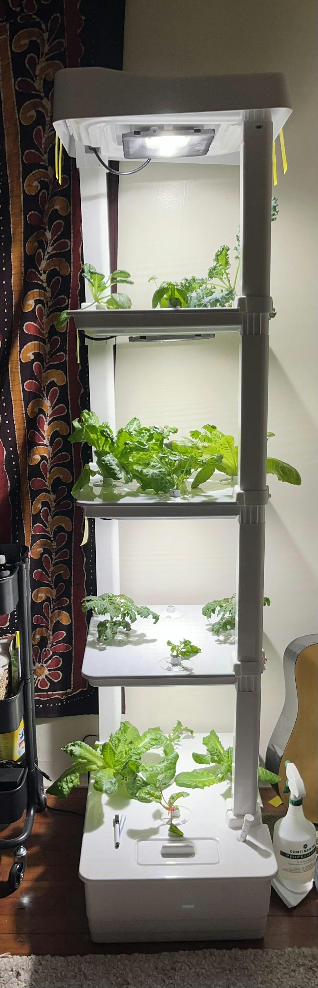 Ordered the 4 tier tower while it was on kickstarter and I love it so much. Simple design and all pieces are replaceable. Company is responsive to solving any issues quickly and provides free indoor garden training. I got mine in January and already have greenbeans, peppers, strawberries, swiss chard, lettuce, tomato, oregano, kale and amaranth growing. Growing in the winter helps a ton with my seasonal affective disorder. Also, bonus it's a Canadian company. Saving up for a second!
