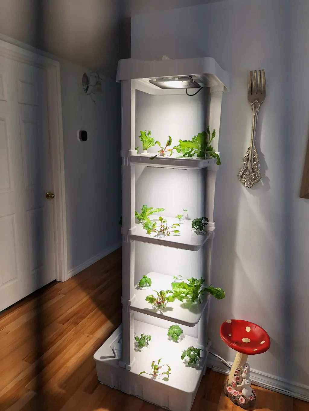 We are a family of 4 and I was determined to find way to grow more food at home. I spent months researching various vertical indoor tower gardens and landed on Hope Innovations. I was excited to see this was a Canadian company and the price was much better then other brands on the market, so i decided to take the leap. We set up 15 Jan 23, and the attached photos were taken just over 30 days of growing. We have already harvested some herbs and multiple lettuce heads. I have seedlings that I will transition outdoors come spring that are doing amazing. The tower has allowed me to started my seedling for outdoor growing without the hassle of watering, nor having every window sill covered with trays.